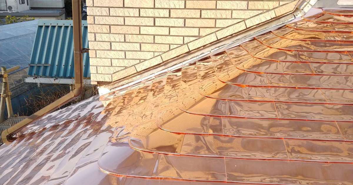 既存の瓦を撤去して、銅板に葺き変え。先日加工したハマグリを取り付けました。