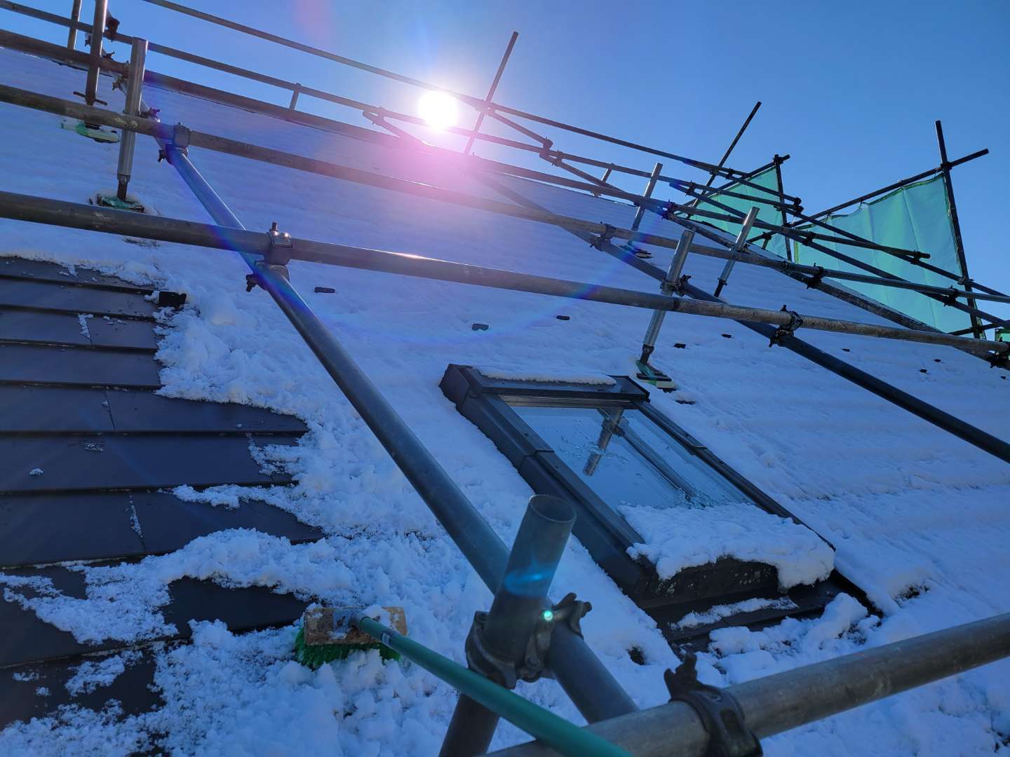 もう少しで屋根が完了なのに、雪が降り積もったので、明日の為に雪降ろし‼️