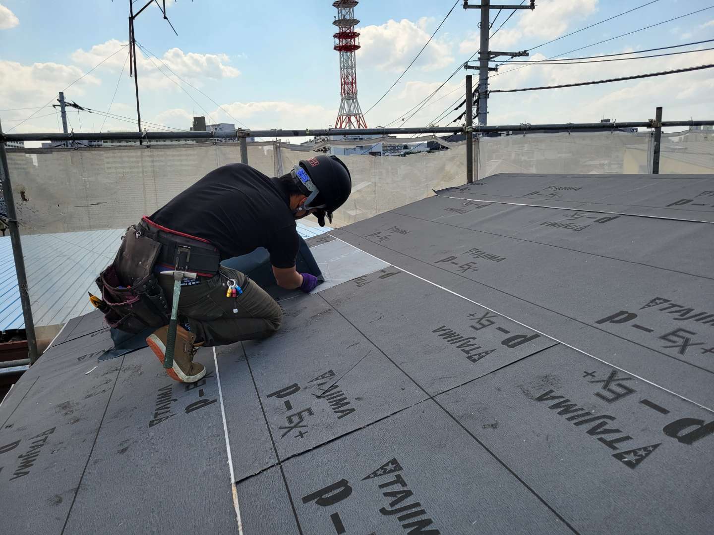 リフォーム工事の屋根下葺、トップライト回り雨仕舞いして帰ります。