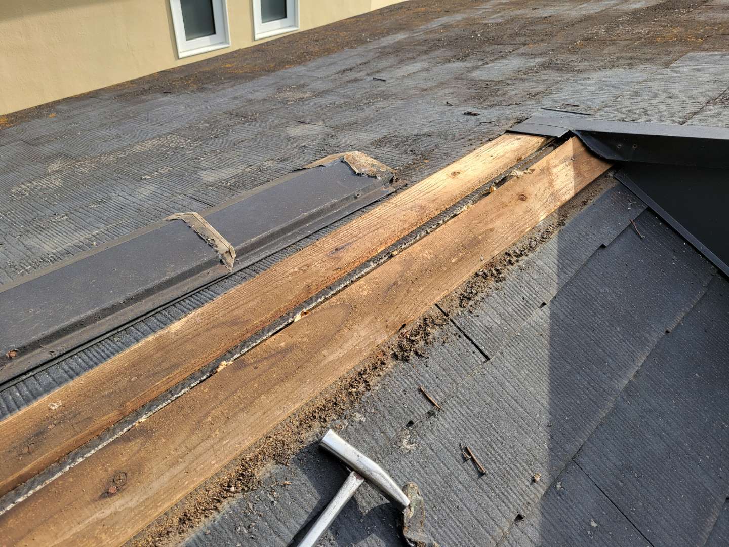 年数が立つと棟板(板金)の下地材に取り付けてある木材が劣化して、釘が抜けやすくなっているのも原因の一つです。