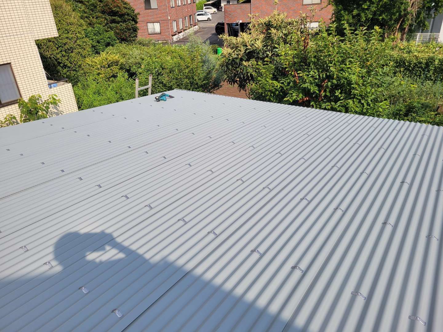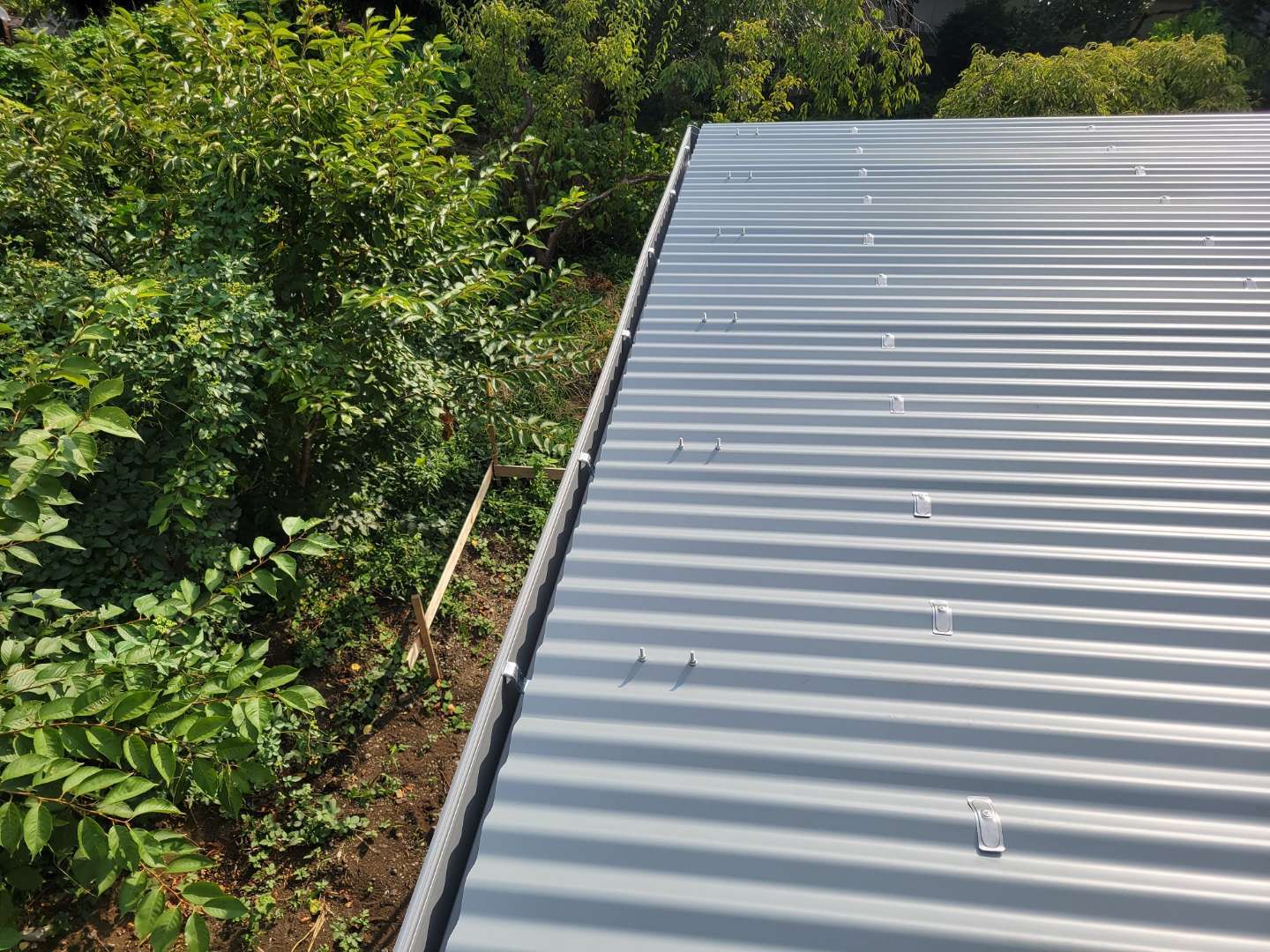 ガレージ屋根を大波板で施工しました。下地の画像を取り忘れましたが下地は木で丸太を使用していてとてもいい感じ。
