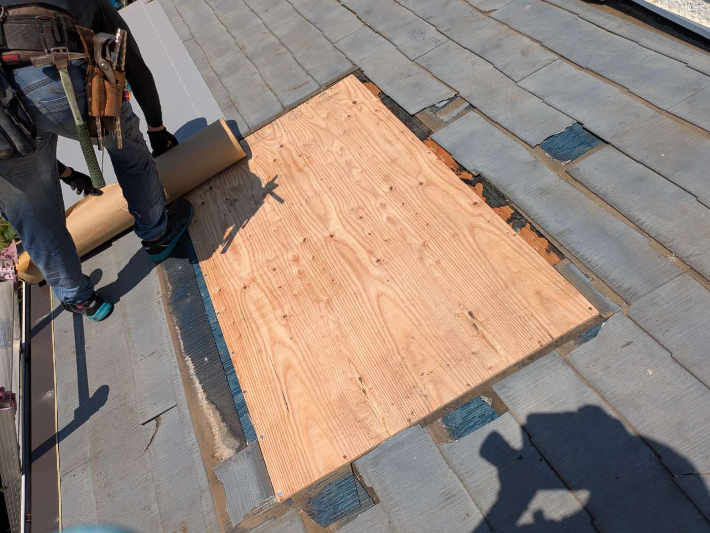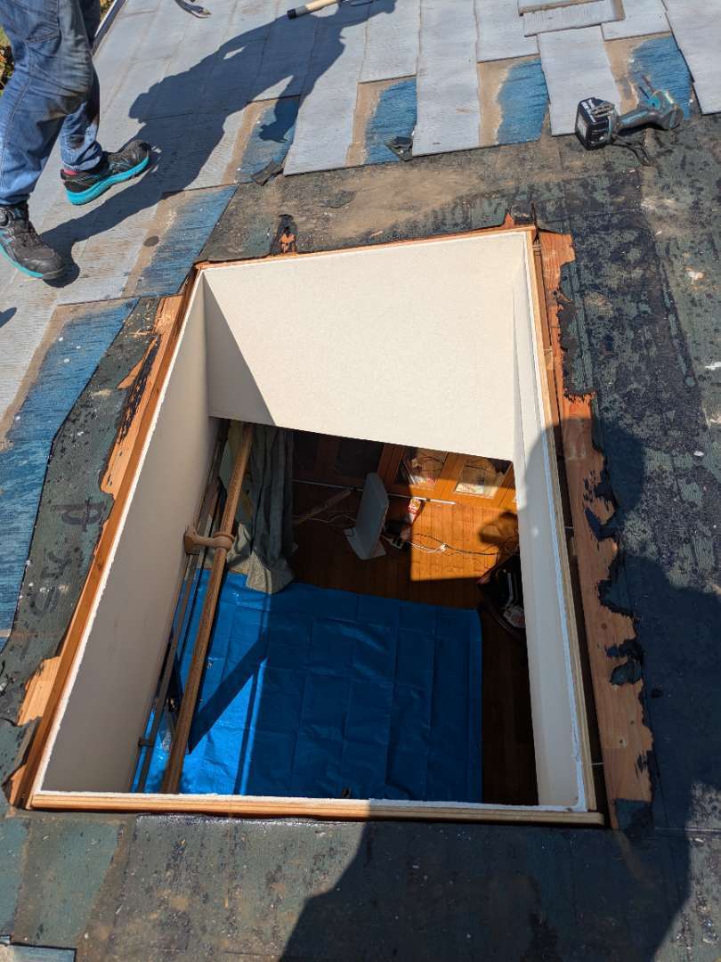 トップライトからの雨漏り工事、撤去して下地を作り、カバー工法で補修しました。