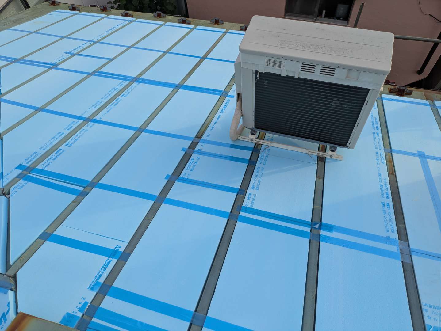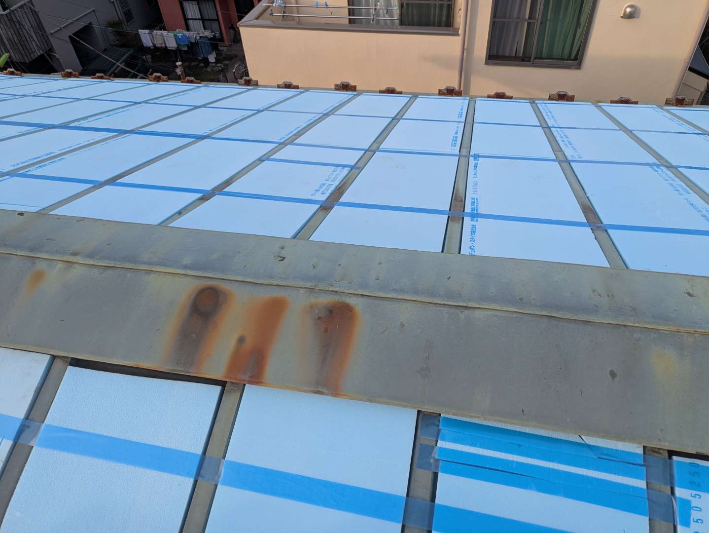 スタイロフォームを既存瓦棒の間に敷き詰めて今日は終了。