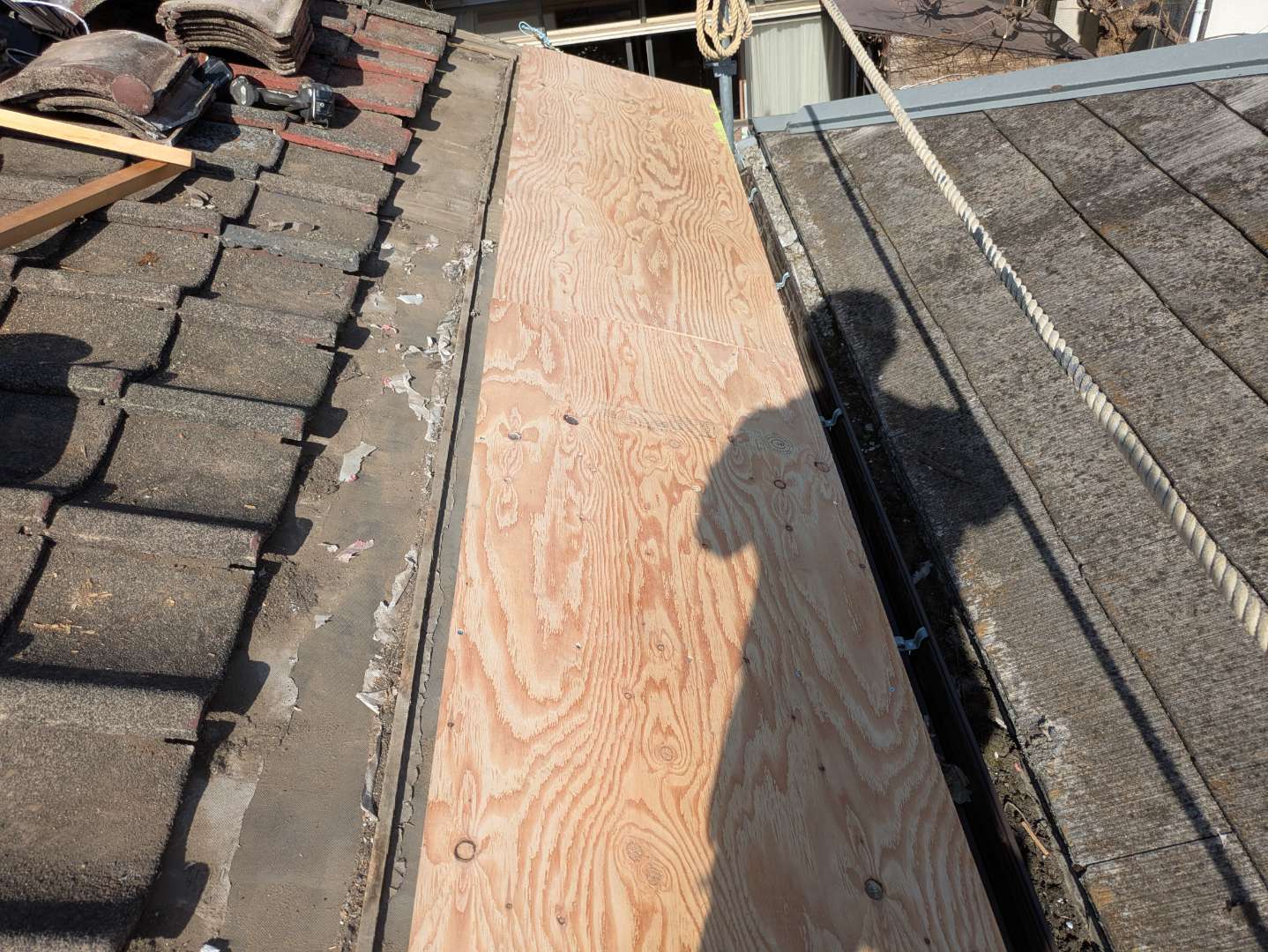 既存のトップライトの上に強化ガラスを乗っけて二重にして板金で雨仕舞いしました。世田谷区は記録的...