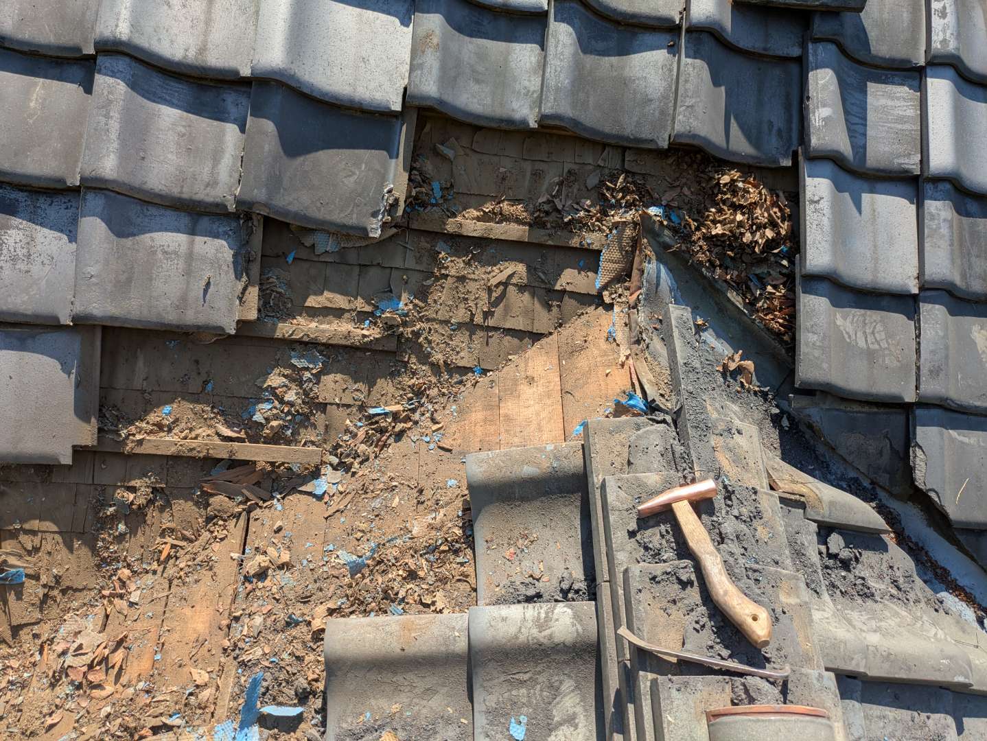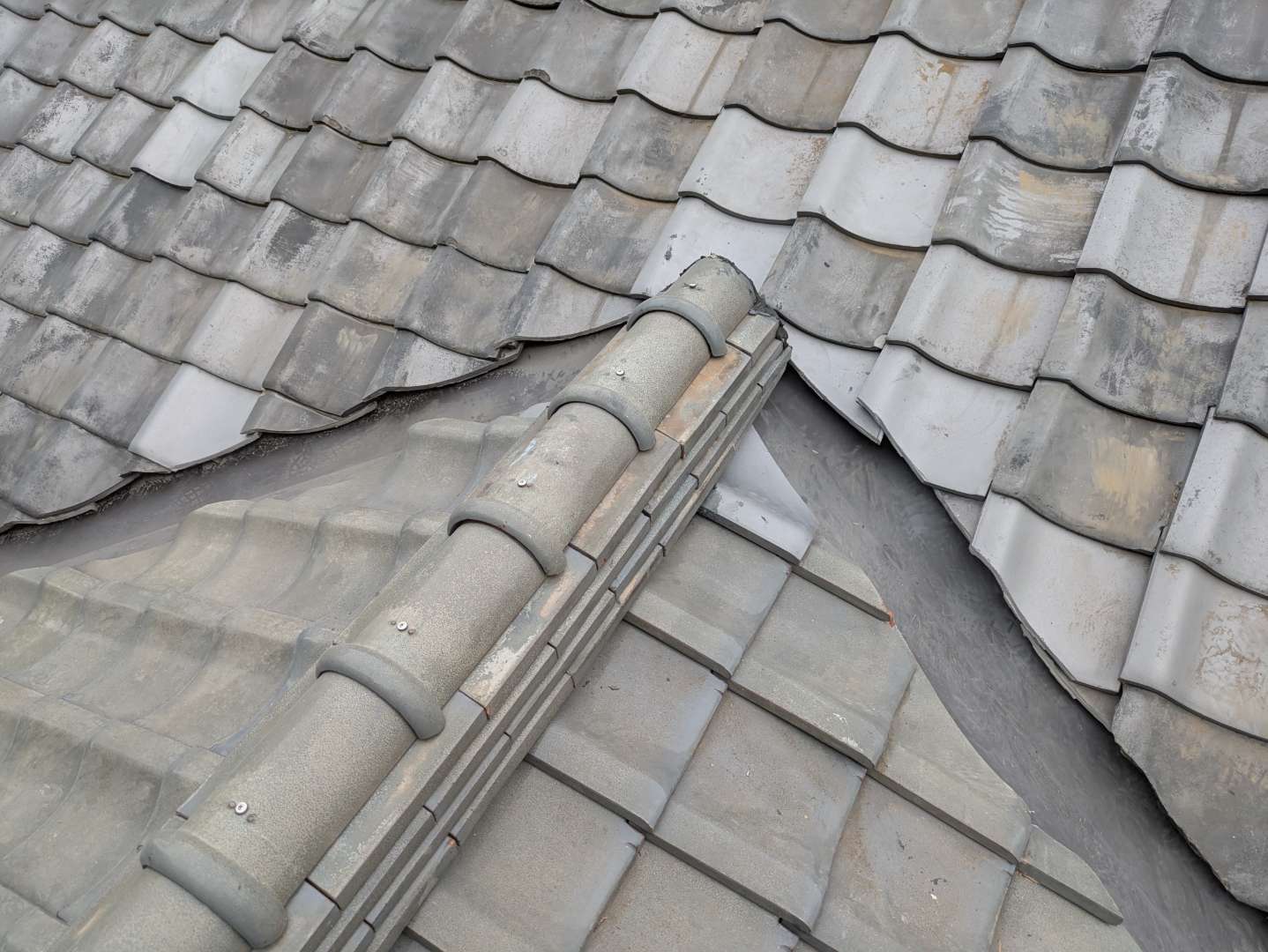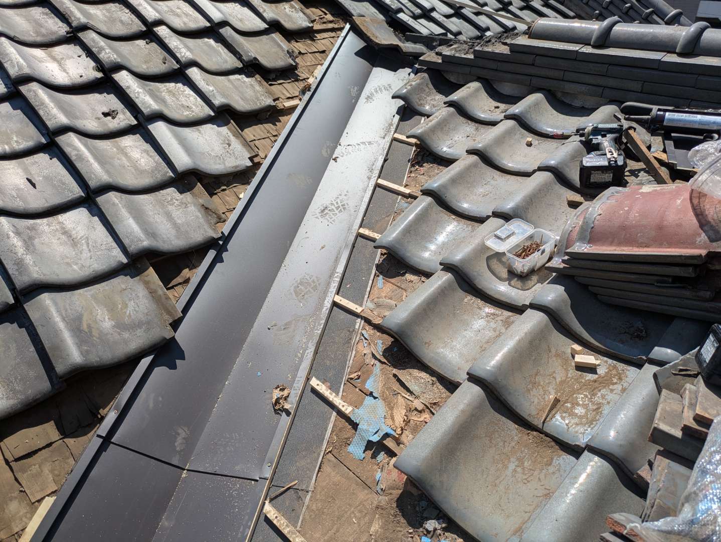 対策として幅の大きい谷と抜けている瓦を新規に取り付けて、劣化の著しい瓦を交換して工事は完了しました。